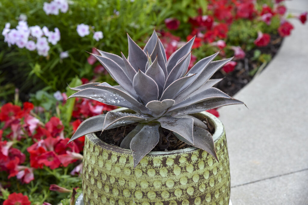 | Features | Smokey purple leaves are broad with tiny white spines. 'Lavender Lady' has a well-rounded, geometric form capable of thrilling in a decorative or mixed container, or standing alone as a landscape specimen. |