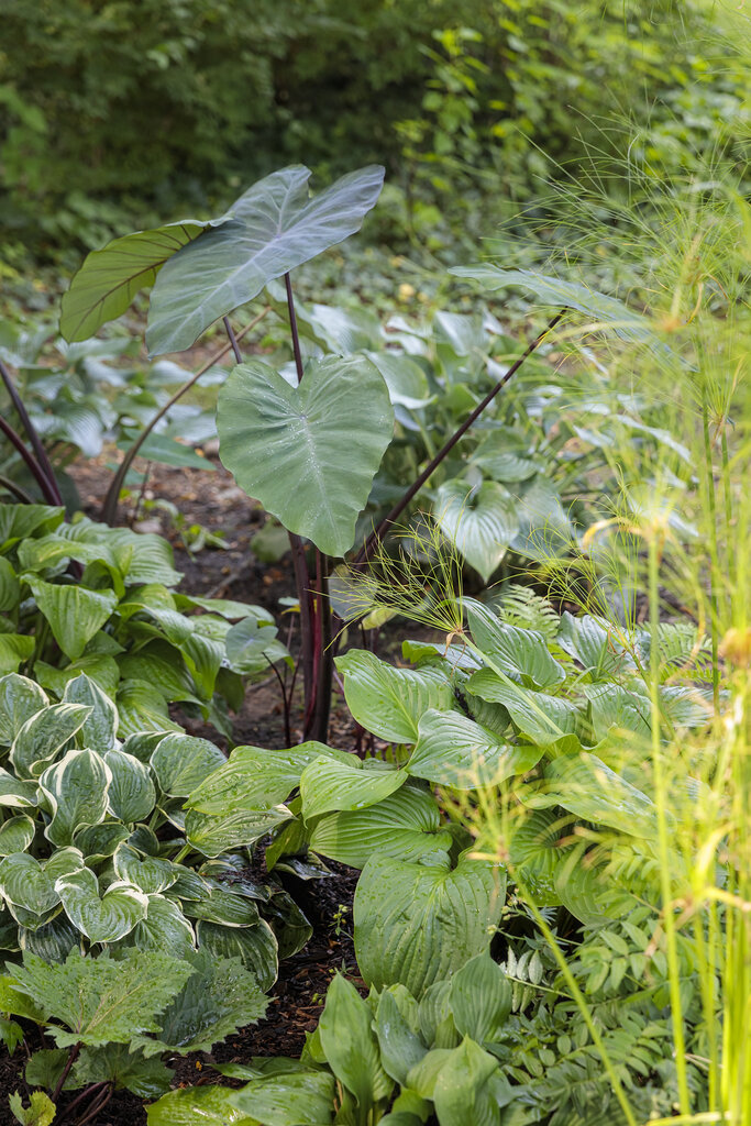 According to the Humane Society of America Colocasia plants can be toxic to pets. This is means that the plants are generally identified as having the capability for producing a toxic reaction. This plant is not edible and can be harmful to humans if ingested. Colocasia form tubers and these tubers can be stored for replanting in the spring. To dig and store tubers follow these directions. First, allow frost to kill the top of the plant then cut back the stems and dig the tubers. Wash off any soil and then allow the tubers to dry. Wrap dry tubers in newspapers or pack them in peat moss. Label each tuber or group of tubers so you know what they are come spring. Store tubers in a dark, cool (35 to 45 F) place. Do not allow tubers to freeze. |