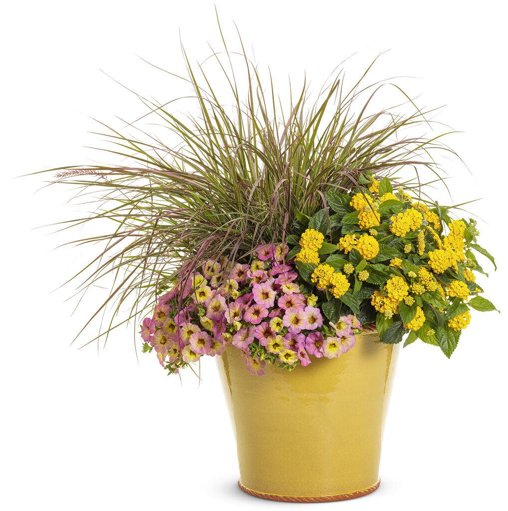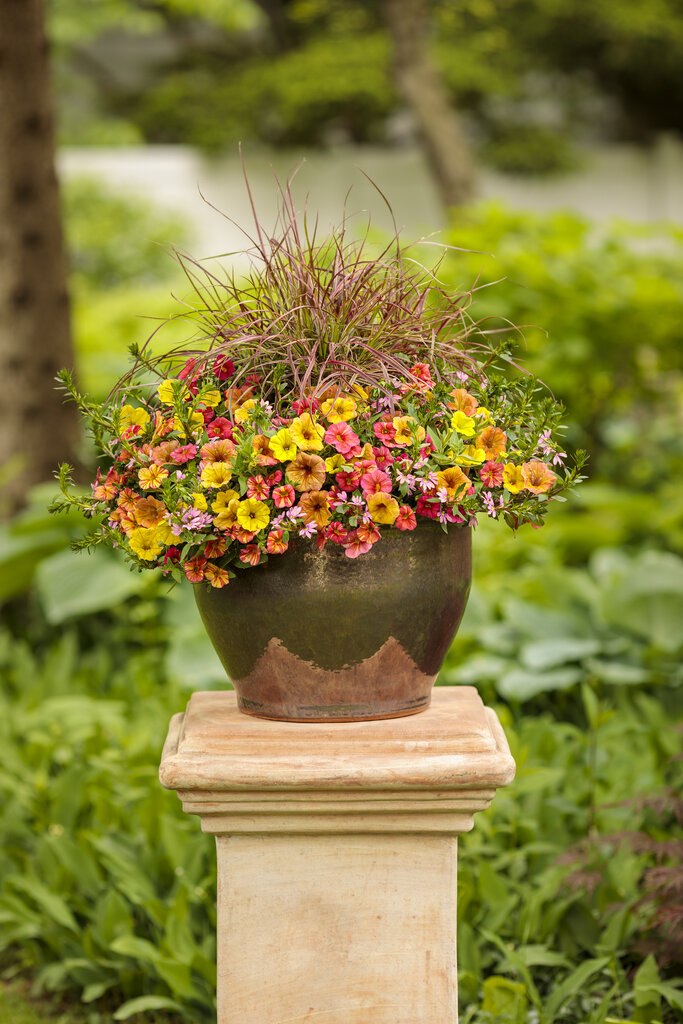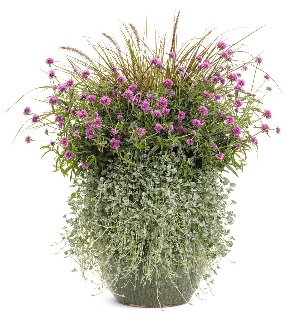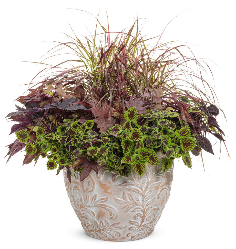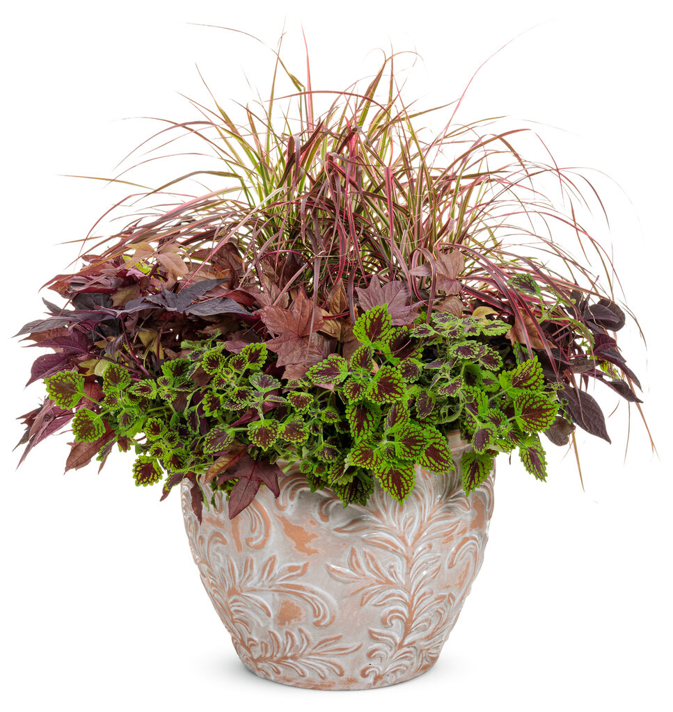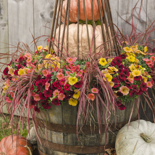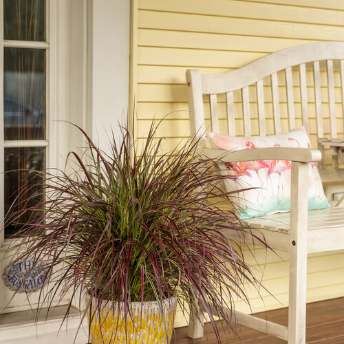 | Features | A beautiful variegated red fountain grass with colorful green and pink leaves. This award-winning plant is heat tolerant and is great in flower beds, along walkways, and on patios. No deadheading is necessary. |